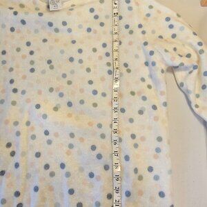 Gorgeous sweater by Betta and made in Italy. Alpaca Mohair blend. White with pastel polka dots. Fuzzy, soft, cozy and stretchy. Size 1X Approximate flat measurements Shoulder to shoulder 17 inches Pit to pit 22 Waist 22 Length from top of shoulder 25 Sleeve 24 Excellent condition! Only worn once. Note colours may appear differently from screen to screen.