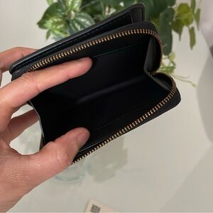 6 interior credit card slots, 1 bill pockets, 1 zipper pocket