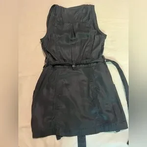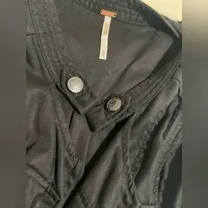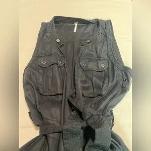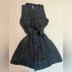 Black mini wrap dress from free people! Features pockets, and buttons on the collar and waist for an edgy look. Strap is adjustable. Can be worn alone or layered with skinny jeans or a big cozy sweater over it!