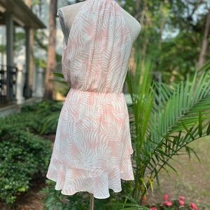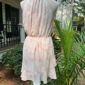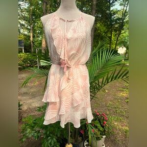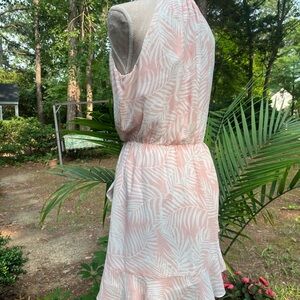 Aakaa Summer Sundress, Pink + Cream Palm Leaves Print, Small, EUC