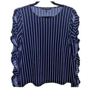 Banana Republic Peek a Boo Cut Out Ruffle Top Blouse Sz M Navy Stripe Stretchy