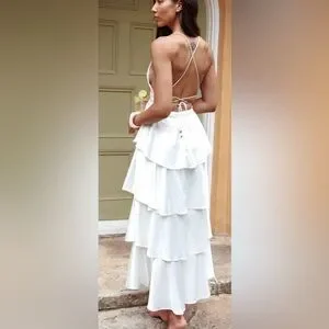 Selfie Leslie Auguste Tiered Frill Strappy Back Dress Ivory