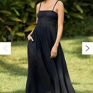 ANTHROPOLOGIE Celandine Strapless Smocked DW Maxi Dress /Black/ Size L -98212269