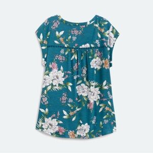 Description: split neck, pleated front, cap sleeves, fitted at chest with loose flair below, gorgeous vivid color, special details, flattering fit, soft and comfortable