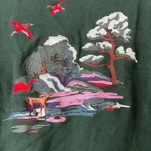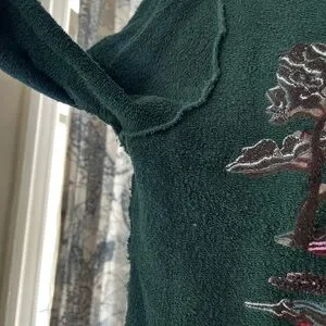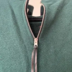Coach Embroidered Green Crewneck Sweater with Zipper Pull