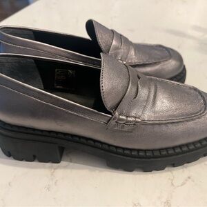 These silver loafers from Free People feature a sleek design with a moccasin-style construction and a classic loafer silhouette. Perfect for versatile wear, they offer a polished look with their comfortable slip-on style.