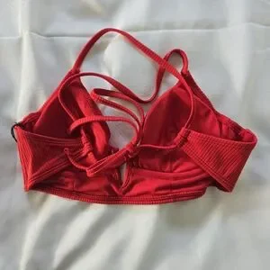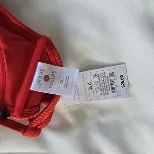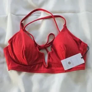 NWT Shade & Shore Red Ribbed Bikini Top. Adjustable tie straps and removable padding.