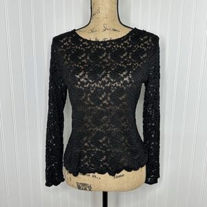 Black Sheer Floral Mesh Top Womens Sz S? Long Sleeve Dark Romantic Fairy Witchy