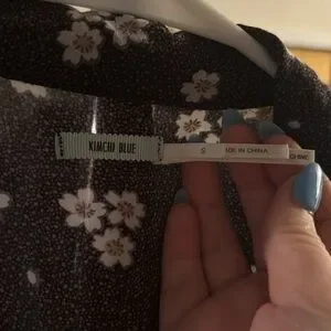 This purple floral sundress by Kimchi Blue features a flattering v-neckline, fabric loop closure buttons and a delicate tie back. The mandarin collar adds a touch of elegance to its relaxed style, making it a versatile addition to your wardrobe. 💜