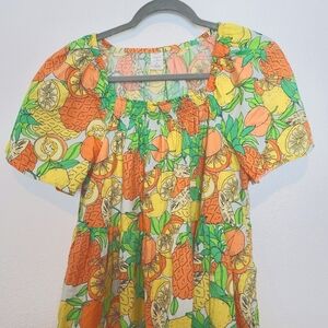 Peyton & Parker Tropical Fruit Print Short Dress Size Medium