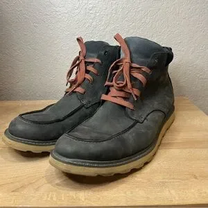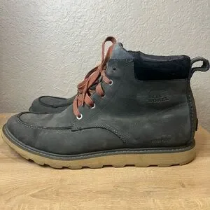 The Sorel Madson II Moc Toe Waterproof Boot in Coal is a stylish and functional choice for men in size 14. These are in excellent condition. Please see all photos as they are part of the listing description.