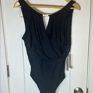 Calvin Klein Black One Piece Swimsuit with Plunging V-Neckline