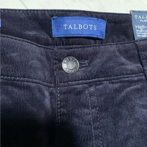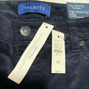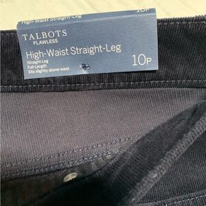 NWT Talbots High waist straight leg pants. Dark navy blue, corduroy like pants. Full length. Size 10P.