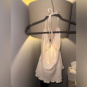 NEW Textured Beige Halter Crop Top Versatile Keyhole Tube Ties A-Line Swing XS