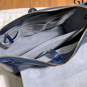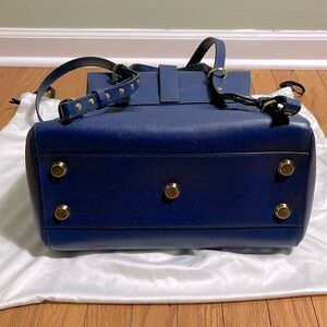 The full-size Maestra Bag in pebbled grain leather. Colorway is Marine (bold, cobalt blue).