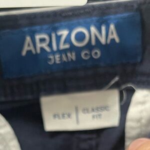 These blue flat front shorts from Arizona Jean Company offer a classic and versatile style. Crafted for comfort, they feature a knee-length cut and a soft, worn-in texture. Ideal for casual outings, these shorts are a wardrobe staple.