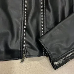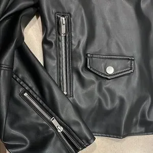 Elevate your style with this sleek black faux leather jacket. Perfect for any occasion, it offers a chic and modern look.