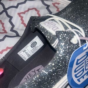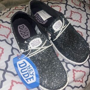 Brand new, never worn Woman’s Hey Dudes. Super sparkly and cute. NEW with TAGS 🙂 Size 6