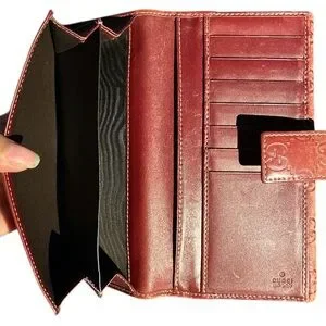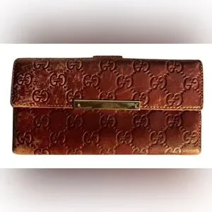 Authentic Gucci - Guccissima Maroon/Brick double snap long leather wallet