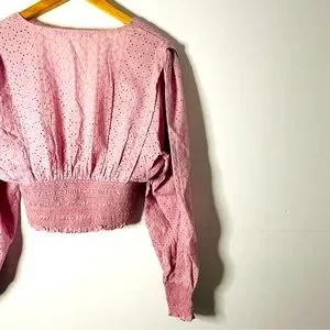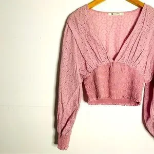 Soft Girl Pastel Pink Eyelet Puff Sleeve Crop Top