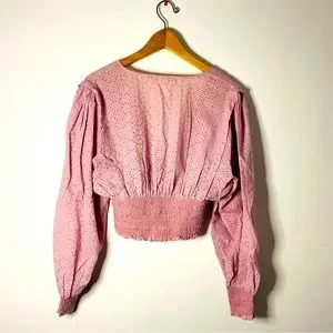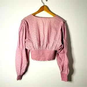 The Impeccable Pig Pink Eyelet Smocked Blouse