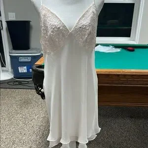This elegant cream slip dress features delicate lace detailing, perfect for a sophisticated and comfortable look. Ideal for intimate wear or sleepwear, this piece combines style and comfort effortlessly.