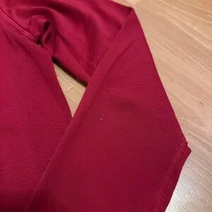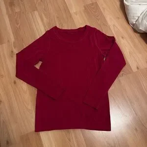 Size 4, beautiful ruby color! Really good condition! one small stain on the back of the right sleeve- see in picture above.
