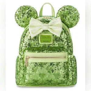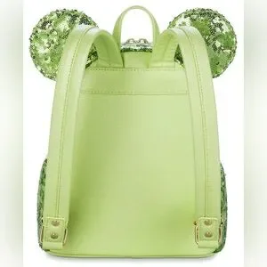 Discover this enchanting Disney Parks Loungefly where each piece shines with a vibrant lime green sequined texture. These structured bags offer a touch of magic and elegance. Perfect for adding a whimsical flair to any outfit.