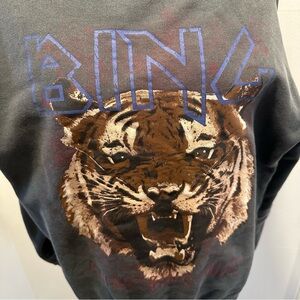 The Anine Bing Black Sweatshirt features a striking tiger graphic on the front, blending streetwear style with bold wildlife imagery. Crafted in a classic crew neck design, it offers a comfortable fit with ribbed cuffs and waistband, making it a standout piece for casual occasions.