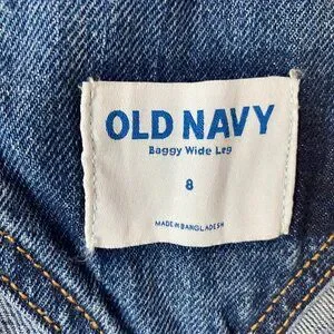 These Old Navy denim overalls exude casual charm with a baggy wide-leg design. Ideal for relaxed outings, they provide a comfortable and versatile addition to any wardrobe. The timeless blue denim pairs effortlessly with various tops, making them a practical yet stylish choice. Durable and easy to wear, these overalls are crafted to last.