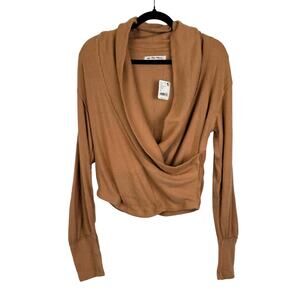 NWT Free People Brown Hold Me Close Deep Surplice Long Sleeve Sweater - Medium