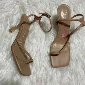 Calvin Klein Tan Heeled Sandals with Ankle Straps