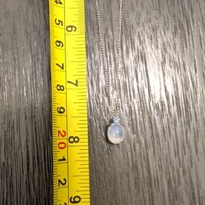 Vintage Van Dell Sterling Necklace, Moonstone Pendant, Mid Century Jewelry, 1950s 1960s, Collectible Sterling Silver... Vintage "VanDell" Sterling Silver Moonstone Necklace with Blue Topaz. Approximately 8 inches long, This exquisite Sterling Silver necklace showcases a delicate chain paired with a captivating moonstone with blue topaz pendant. Excellent gift idea or birthstone necklace for that special loved one. The translucent stone, set in a minimalist silver setting, exudes a subtle luminescence that enhances its ethereal charm. Perfect for adding a touch of elegance to any ensemble.