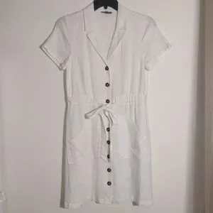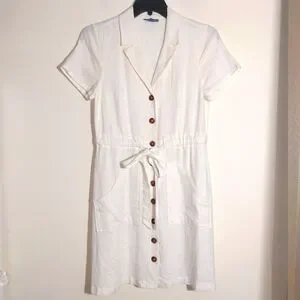 ModCloth Women's Linen Blend Enthralled Again Ivory Shirt Dress Size M EUC