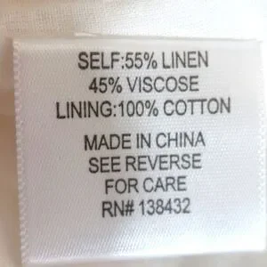 Self: 55% Linen, 45% visose; Lining: 100% Cotton