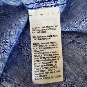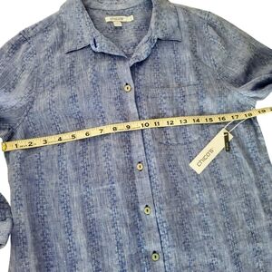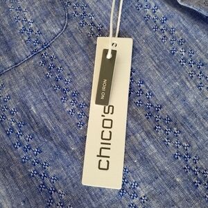 CHICO'S Blue 100% Linen No Iron 3/4 Sleeve Button-Up Blouse Women's 0 | U.S. 4