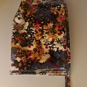 This J. Crew cosmetic bag showcases a vibrant blend of orange and yellow hues, perfect for adding a pop of color to your everyday essentials.