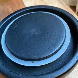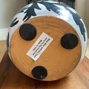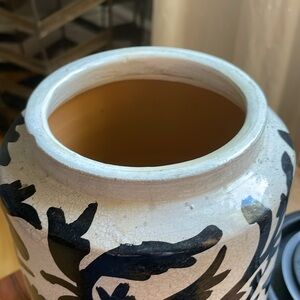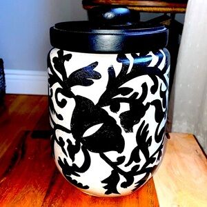 Elegant ceramic jar with a black floral design on a white background. Perfect for home decor or storage.