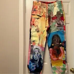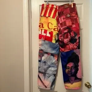 KidSuper “Breathing Life into the Inanimate” silky cargo pants pants featuring stunning artistic prints with a mix of vibrant colors. Unique and eye-catching design. Spring/Summer 2023 collection. Slight seam fray on right inner thigh seam - see photo.