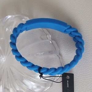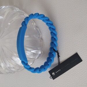 New, never used. This unisex Marc by Marc Jacobs eye-catching blue bracelet features a unique coiled design reminiscent of a telephone cord, crafted from flexible silicone for comfort and durability. Its seamless loop design ensures a sleek and modern look, making it a versatile accessory for any occasion.