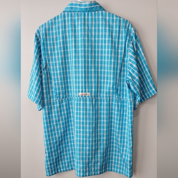 Habit mens Medium blue plaid button down short sleeve shirt fishing vented spf