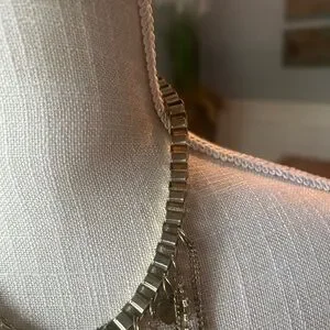 This stunning gold fringe necklace adds a touch of elegance to any outfit. Perfect for special occasions or everyday wear.