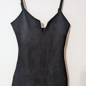 Nasty Gal Black Suede Deep V Spaghetti Strap Dress Slit XS