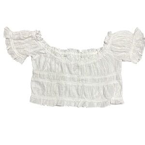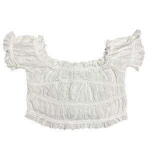 Ocean Drive White Cotton Peasant Style Ruffle Crop Top Ladies Size M