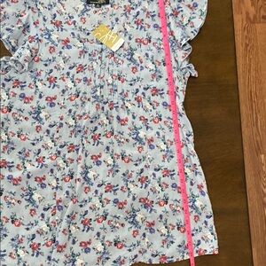 Suzanne Betro Blue Ruffled Cap Sleeve Blouse