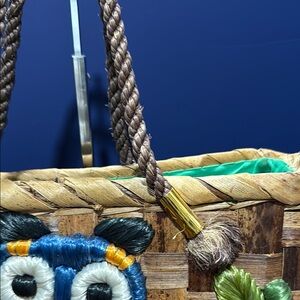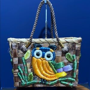 Handcrafted Owl Design Woven Tote Bag - Multicolor
