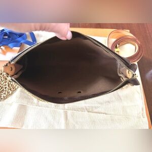 Almost new! Louis Vuitton Monogram Eva Clutch 2Way Crossbody. Wear 2 ways, crossbody w/ long vachetta shoulder strap or by just the untarnished, gold wristlet chain