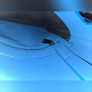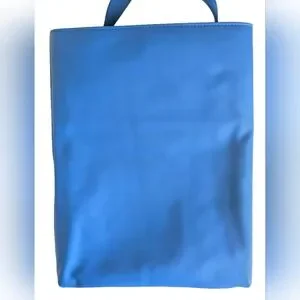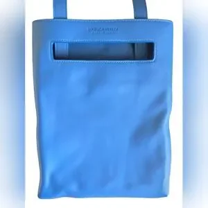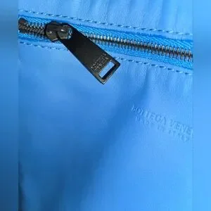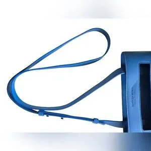 Experience the elegance of Bottega Veneta with this minimalist blue bag, featuring a sleek rectangular handle. Crafted from smooth material, its clean design offers a sophisticated touch to any ensemble.
