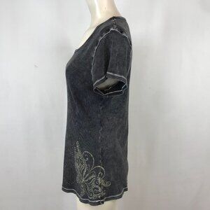 UNITY - WOMEN'S XL - GRAY RIBBED SHORT SLEEVE ROUND NECK SEQUIN TOP Y2K GOTH