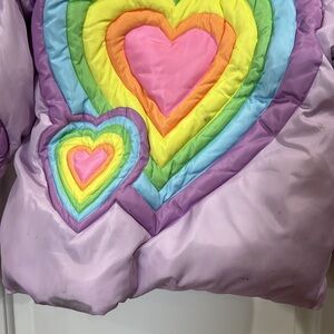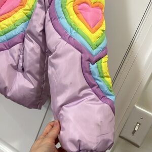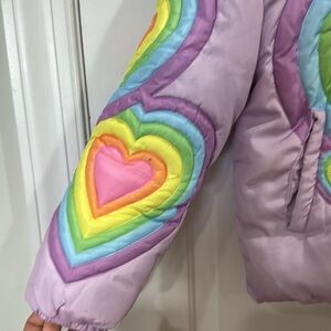 LOLA + THE BOYS GIRLS RAINBOW HEART PUFFER JACKET SIZE 10